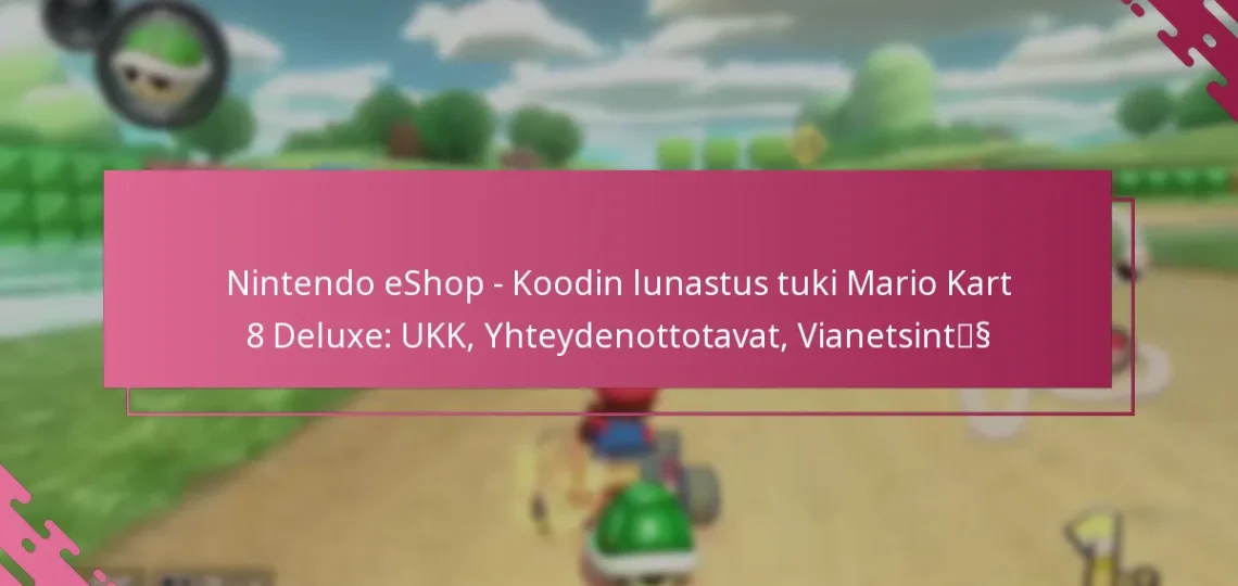 Lunastaaksesi Nintendo eShop -koodeja Mario Kart 8 Deluxe -pelille, sinun on ensin luotava Nintendo-tili, päästävä laitteesi eShopiin, syötettävä koodi ja vahvistettava lunastus. Näiden vaiheiden noudattaminen mahdollistaa pelin nauttimisen ilman vaivannäköä.